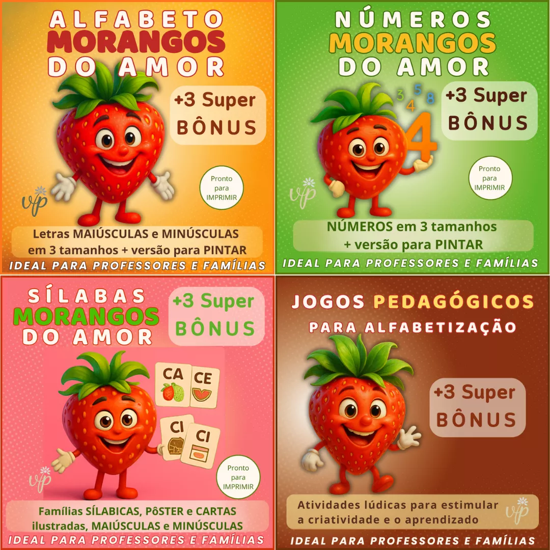 A coleção completa dos kits Alfabeto, Números, Sílabas e Jogos Morangos do Amor em um único pacote!